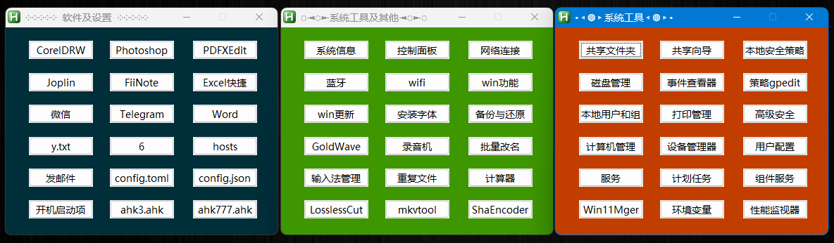 Gui, Show, w340 h260 x888 y%yPos%, •◃◍▹系统工具◃◍▹•