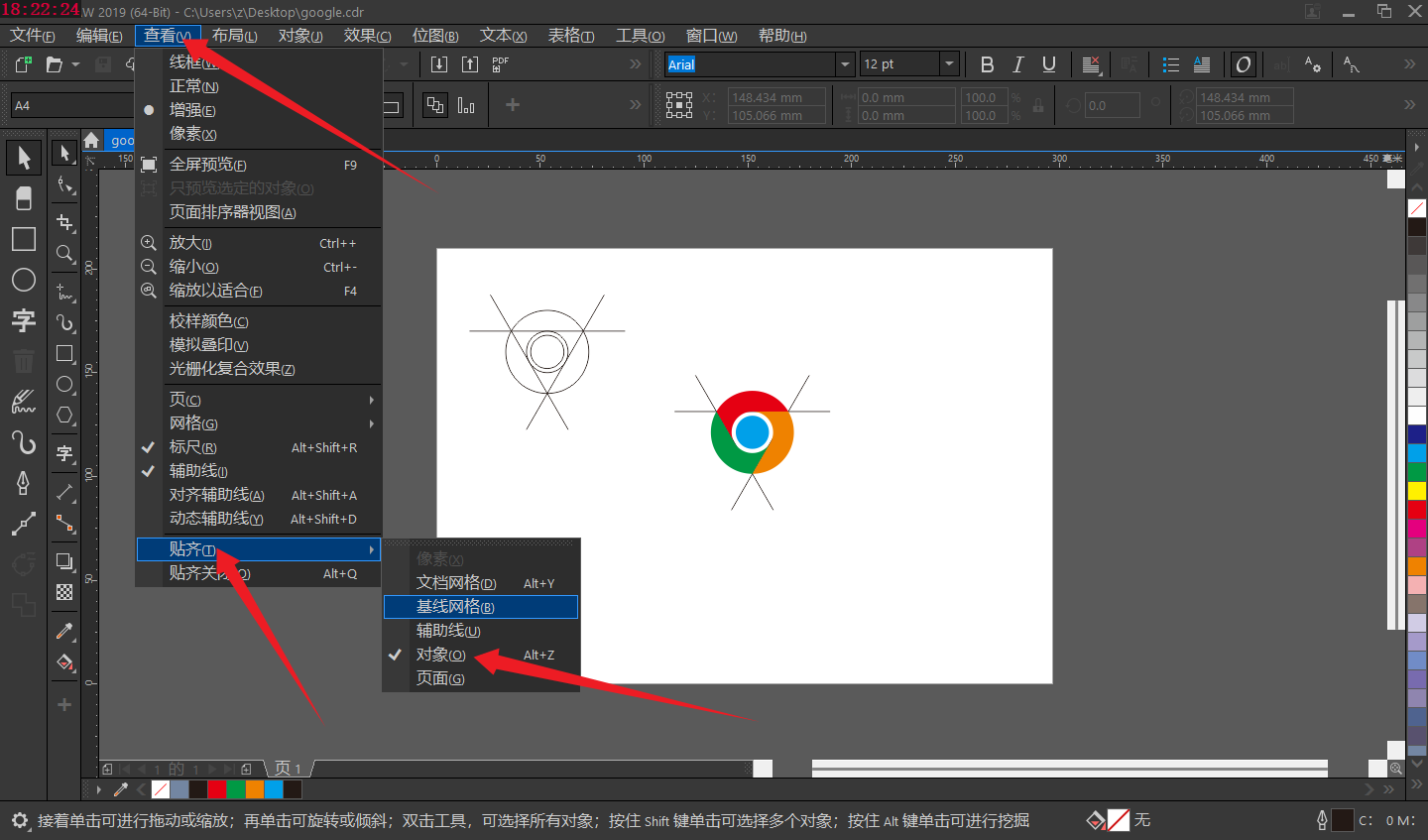 coreldraw 中,如何设置成靠近圆心时,就会显示出圆心来?