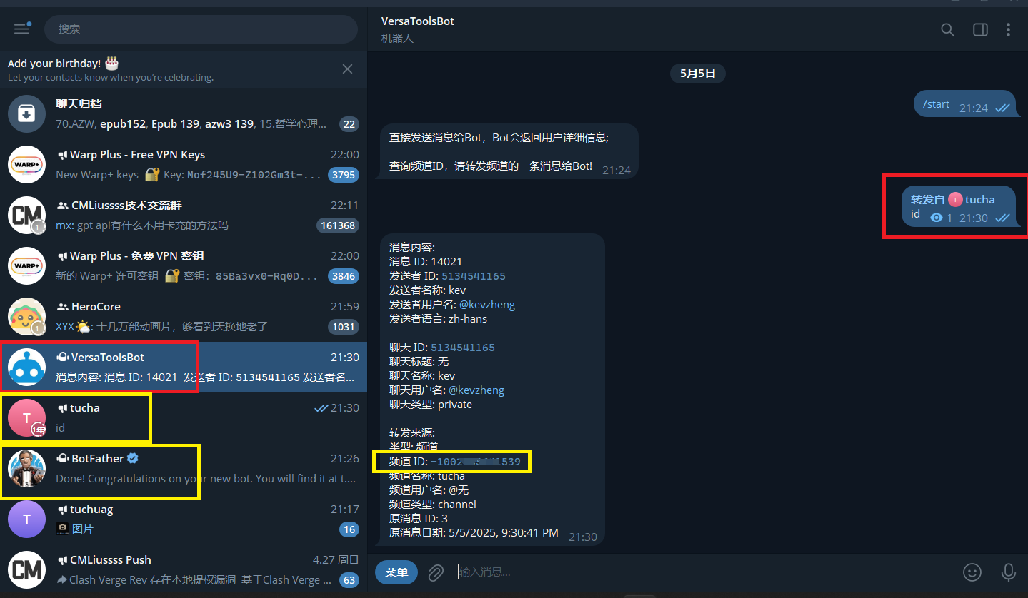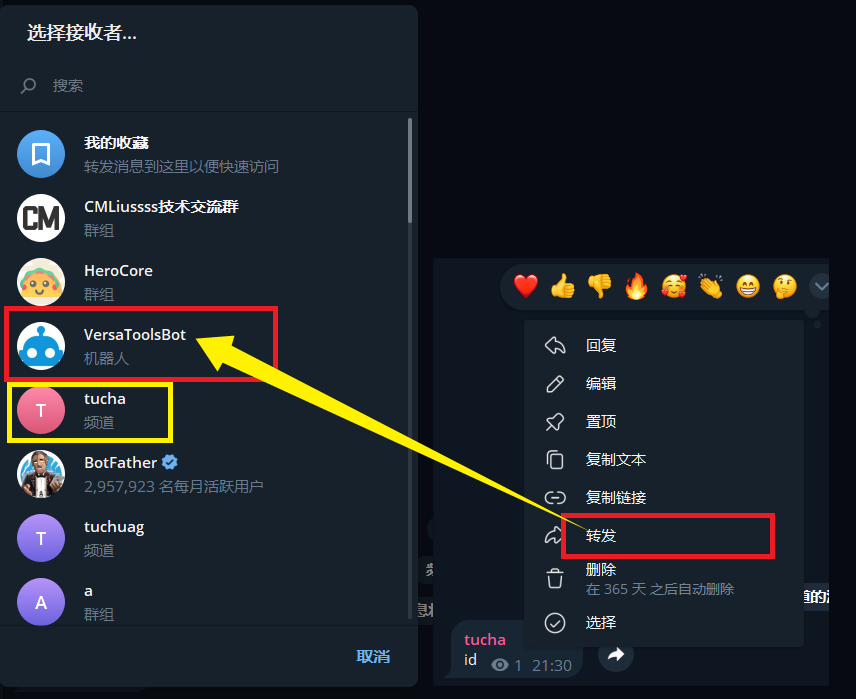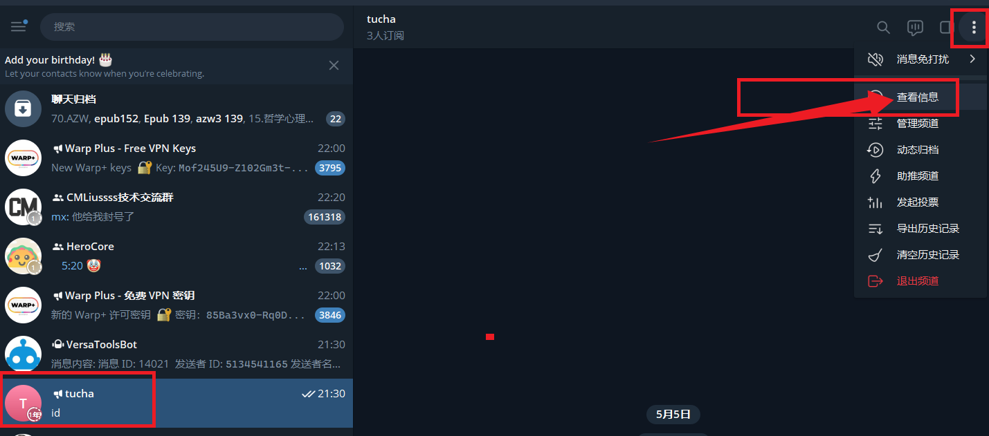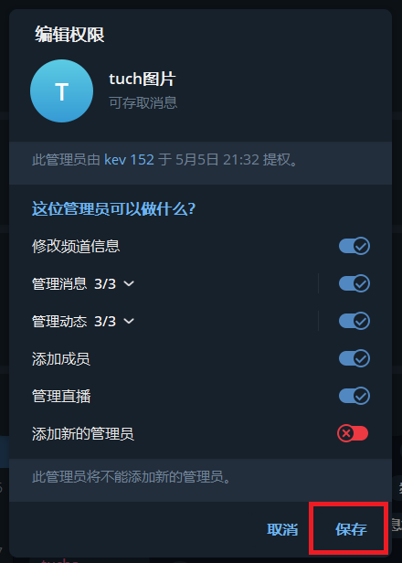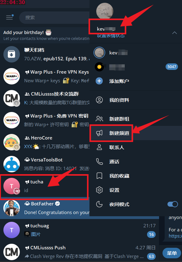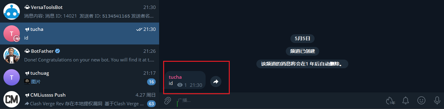 其次在电报中新建一个机器人,新建一个频道,并将此机器人添加为管理员