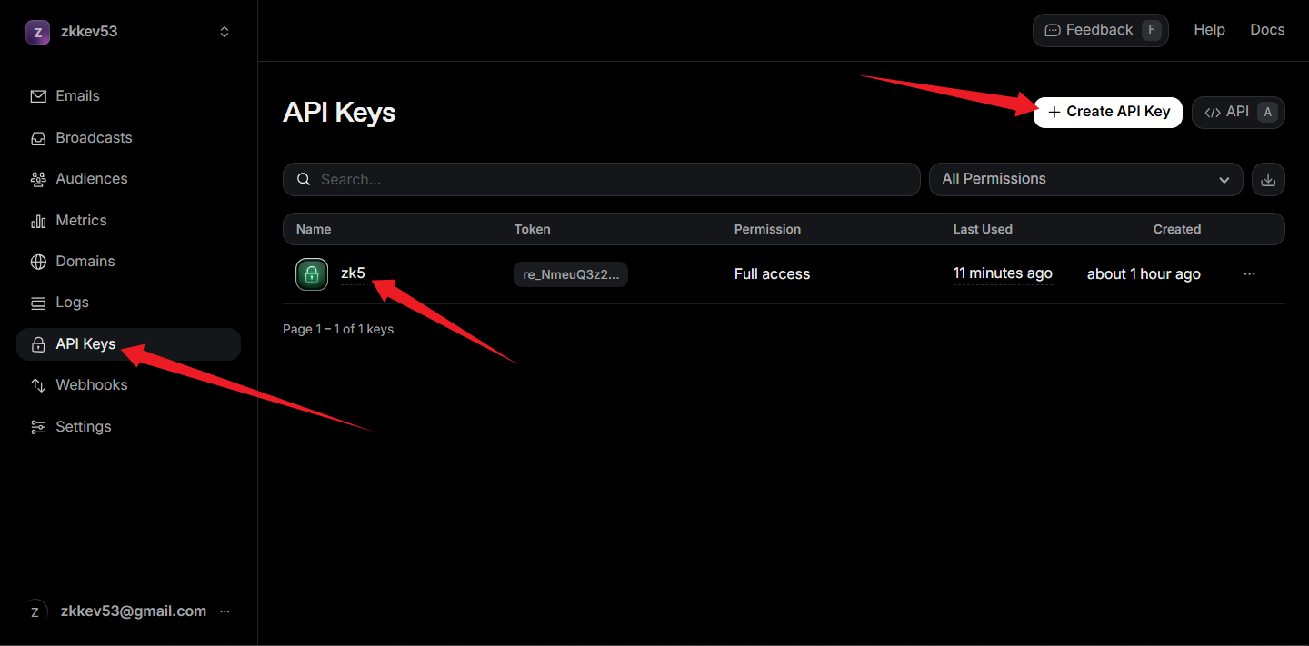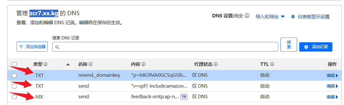 resend.com的设置如下