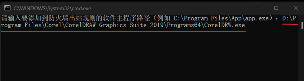 set /p exePath=请输入要添加到防火墙出站规则的软件主程序路径(例如 C:\Program Files\App\app.exe):