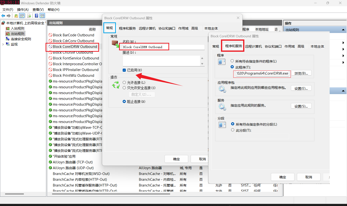 :: 阻止某个软件出站